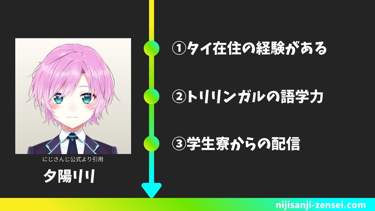 夕陽リリさんは日本語、英語、そして非公開のもう1つの言語を話せるトリリンガルであることが知られています。